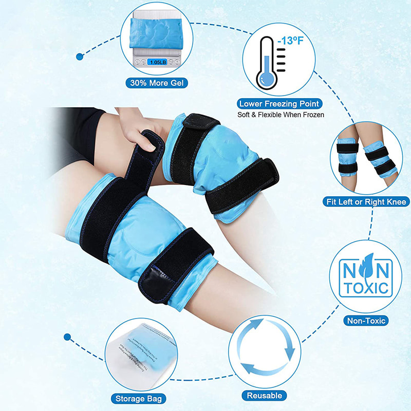 ทำการประคบเย็นเพื่อช่วยเพิ่มความเร็วในการฟื้นตัวจากอาการปวดเข่าเรื้อรังและการฟื้นตัวหลังการผ่าตัดลดรอยฟกช้ำและบวมที่เกี่ยวข้องกับการบาดเจ็บกีฬาลดความตึงเครียดของกล้ามเนื้อและโรคข้ออักเสบ