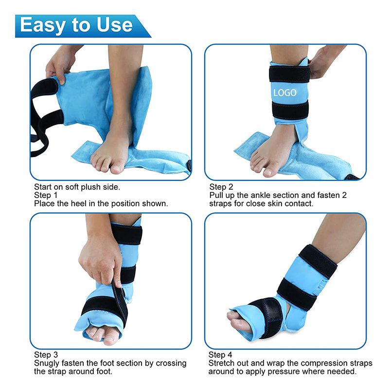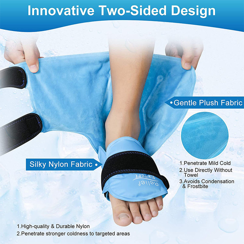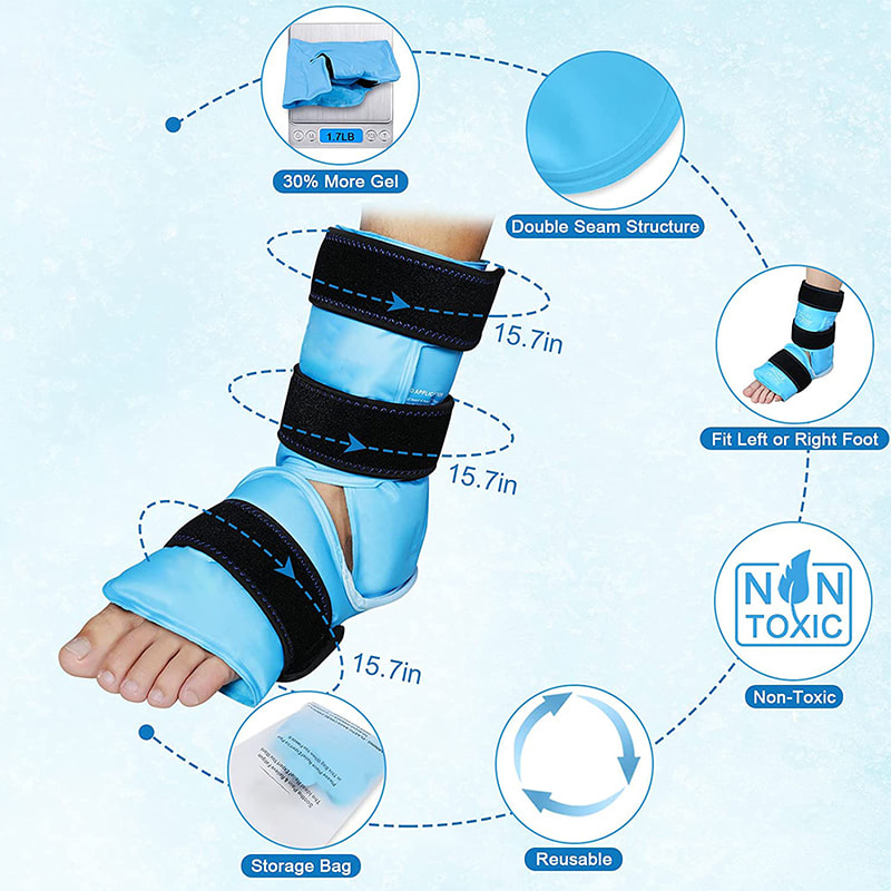 แพ็คน้ำแข็งสำหรับข้อเท้าที่มีการออกแบบปกแบบเต็ม 360 สามารถห่อข้อเท้าและเท้าในทุกทิศทางซึ่งสามารถบรรเทาอาการปวดกล้ามเนื้อหลังออกกำลังกายได้อย่างมีประสิทธิภาพหรืออาการบวมหลังการบาดเจ็บ