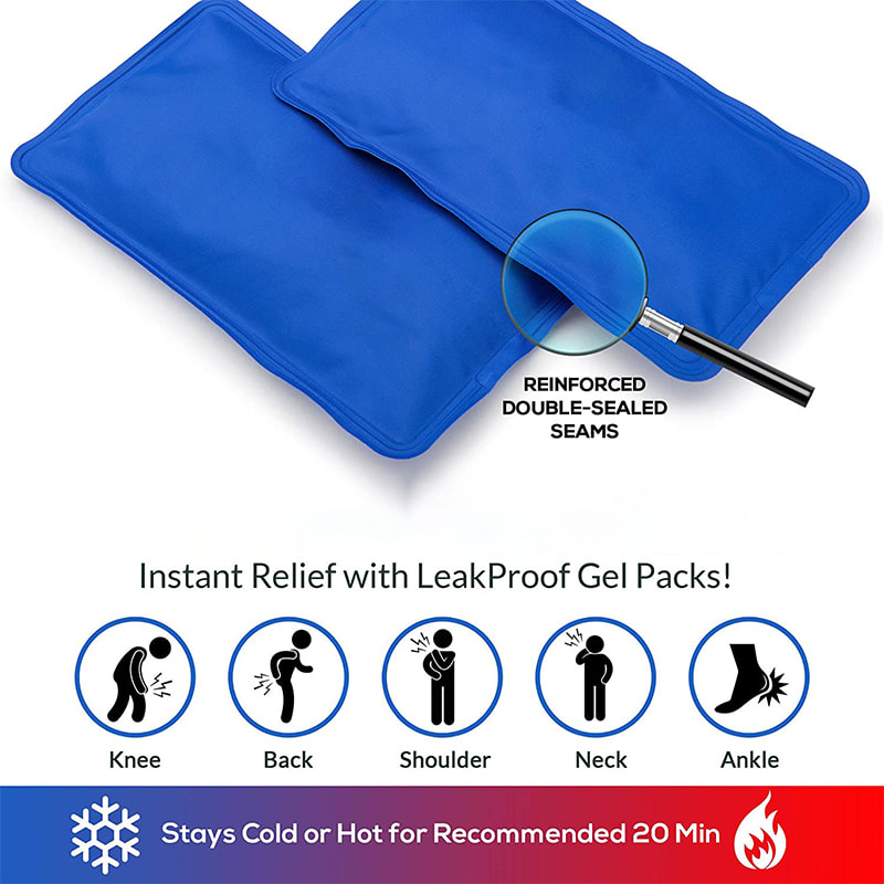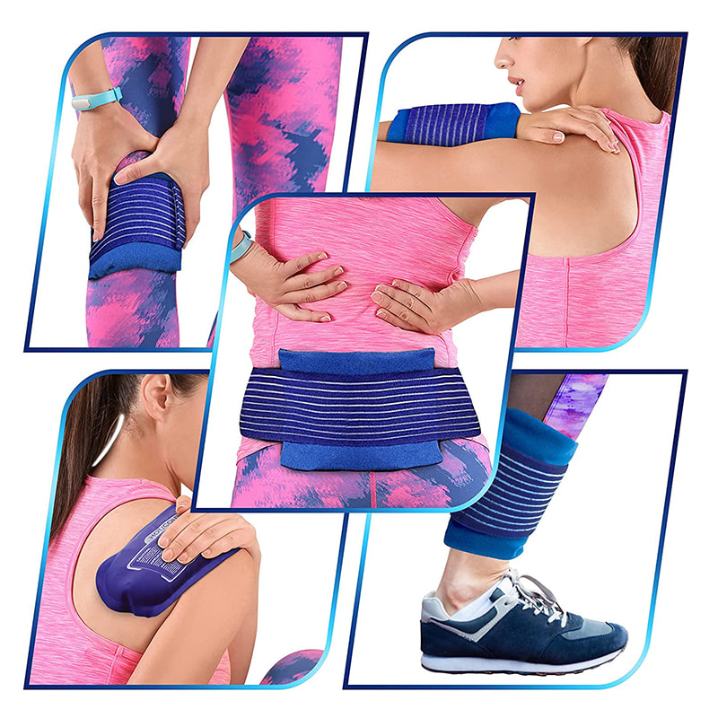 แพ็คเจลน้ำแข็งสามารถใช้กับส่วนของร่างกายขนาดเล็กและขนาดกลางรวมถึงหัวเข่า, หลัง, ไหล่, แขน, ข้อมือหรือเท้า ยืดหยุ่นในการพันเป็นแพ็คน้ำแข็งข้อศอกหรือแม่พิมพ์ได้อย่างง่ายดายที่คอน้ำแข็งหรืออาการบาดเจ็บที่ข้อเท้า การประคบเย็นแต่ละครั้งนั้นมีความยืดหยุ่นแช่แข็งดังนั้นจึงเป็นรูปทรงของพื้นที่ใด ๆ ของร่างกายเพื่อการรักษาที่มีประสิทธิภาพ นอกจากนี้การแทรกเจลรั่วไหลแต่ละอันยังคงอุณหภูมิไว้สำหรับไอซิ่งบ่อยๆ