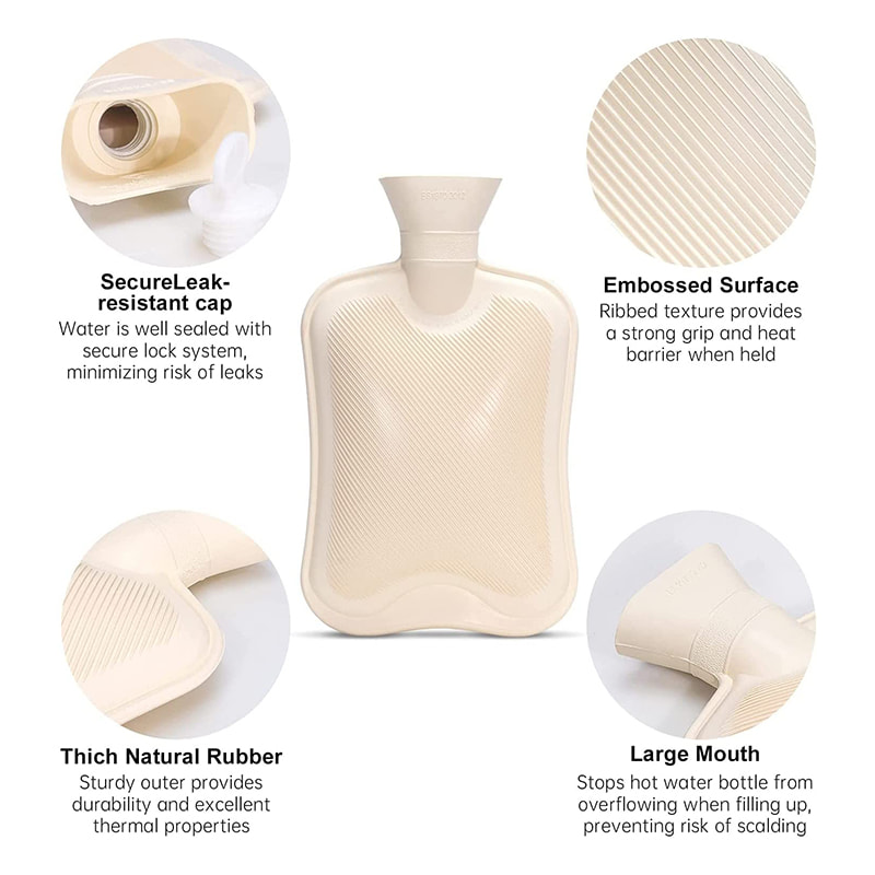 ปากกว้างนั้นง่ายต่อการเติมและริมฝีปากต่อต้านการปะทุของขวดน้ำร้อนพร้อมฝาครอบป้องกันไม่ให้น้ำพ่นกลับออกมาเหมือนยางเก่าเหล่านั้น