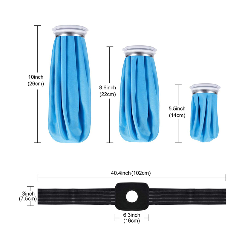 แพ็คน้ำแข็งขนาดเล็กสำหรับเด็กหรือปวดเมื่อยและปวดเล็กลงในขณะที่สองอันที่ใหญ่กว่านั้นเหมาะสำหรับวัยรุ่นและผู้ใหญ่