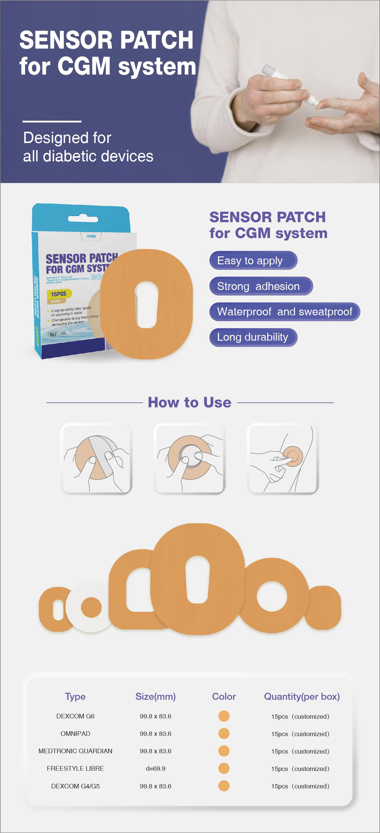แผ่นแปะกาวเซ็นเซอร์ CGM แบบตัดล่วงหน้า เข้ากันได้กับ Dexcom G6 G7 Freestyle Libre | โรงงาน OEM แพทช์ตรึงการแพทย์กันน้ำ