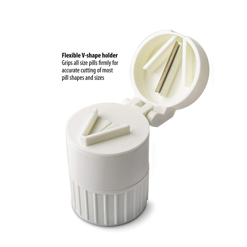 การออกแบบรูปตัว V สำหรับผู้ดูแลในกล่องตัดด้านบนแก้ไขยาเม็ดและคุณสามารถตัดยาได้อย่างง่ายดายโดยการปิดฝา