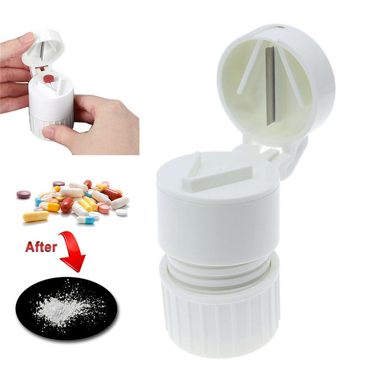 คุณสามารถตัดยาได้ครึ่งหนึ่งโดยการปิดฝาแล้วบดแท็บเล็ตเป็นผงละเอียดโดยการบิดเครื่องบดเม็ดล่าง