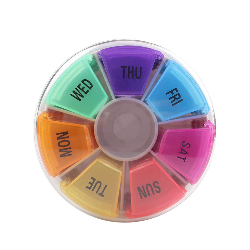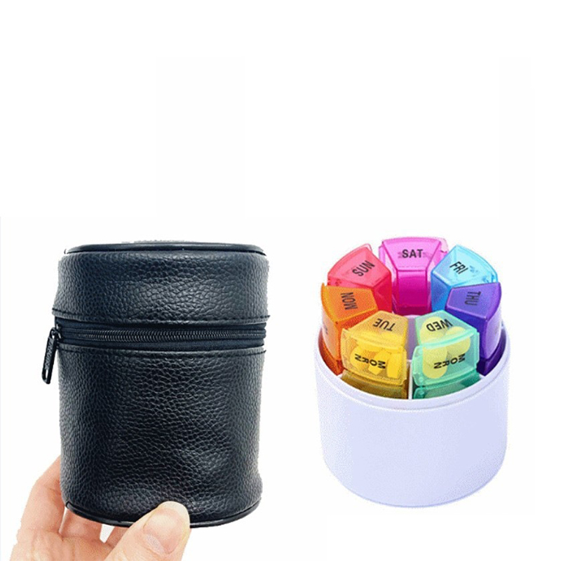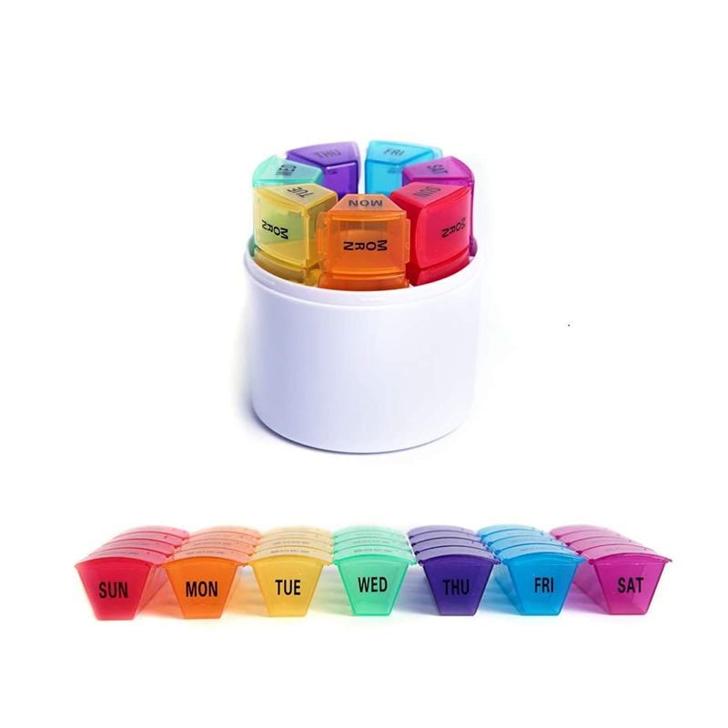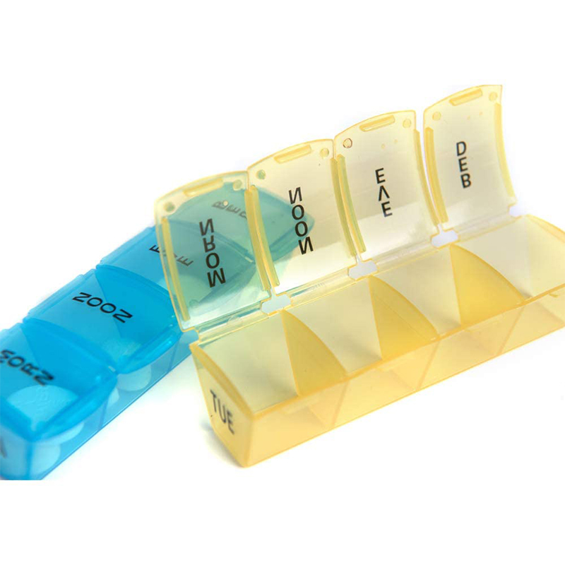 กล่องยาขนาดกะทัดรัดแต่ละกล่องจะถูกพิมพ์ด้วยไอคอนวันที่และเวลาสัปดาห์และกล่องยารายสัปดาห์แต่ละกล่องสามารถแยกแยะได้อย่างง่ายดายด้วย 7 สีที่แตกต่างกัน