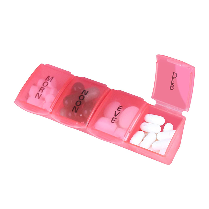 แต่ละถาดแบ่งออกเป็น 4 ช่อง ผู้จัดงานเสริมที่มีฝาปิดแยกกันสามารถเตือนความจำยาได้