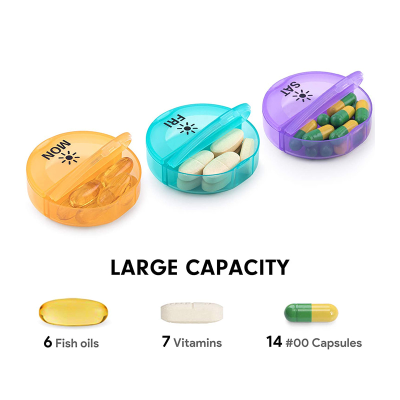 7 กล่องรายวันแต่ละกล่องที่มี 7 สีช่วยให้คุณหลุดออกมาเดี่ยวหรือไม่กี่วันของการใช้ยาเมื่อคุณออกไป
