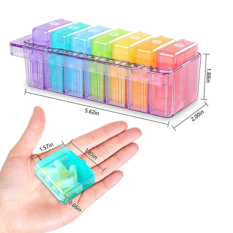 ขนาดของผู้จัดกล่องยารายวันมีขนาดใหญ่เท่ากับปาล์มสามารถใส่กระเป๋าเงินหรือกระเป๋าของคุณได้อย่างง่ายดาย