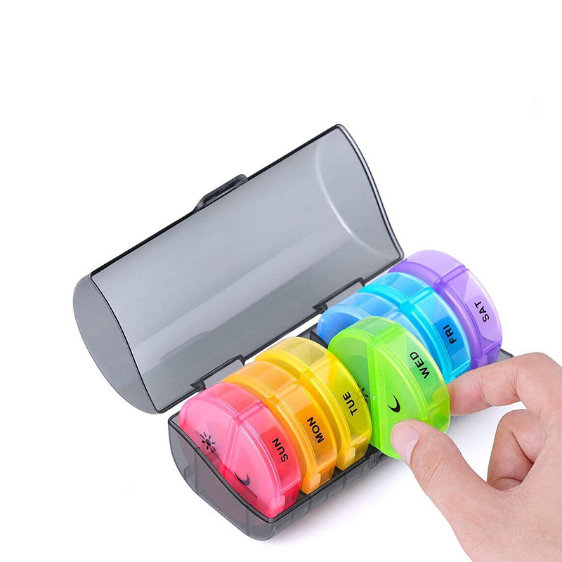 7 กล่องรายวันแต่ละกล่องที่มี 7 สีช่วยให้คุณหลุดออกมาเดี่ยวหรือไม่กี่วันของการใช้ยาเมื่อคุณออกไป
