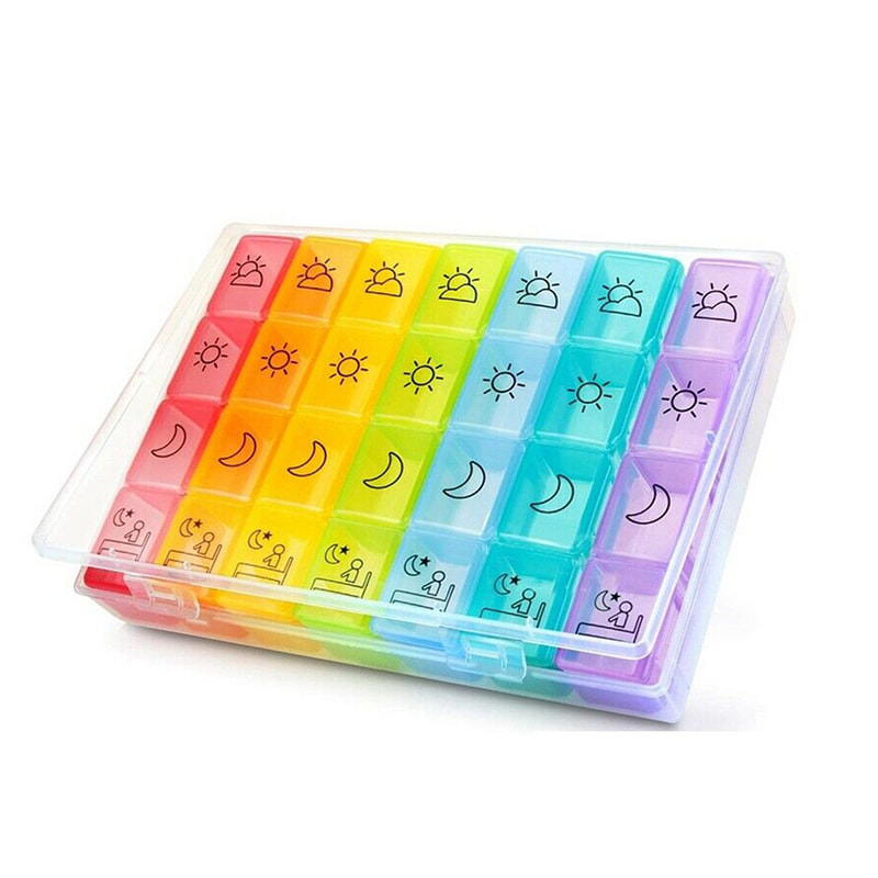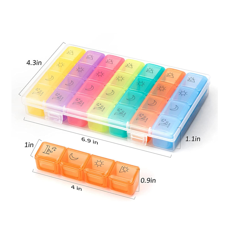 ผู้จัดการยาเม็ด 7 วันจะติดตามยาของคุณ 4 ครั้งต่อวัน (เตียงนอนตอนเช้า) เครื่องหมายวันที่เพื่อเตือนคุณว่าคุณต้องใช้อะไรในวันนั้น