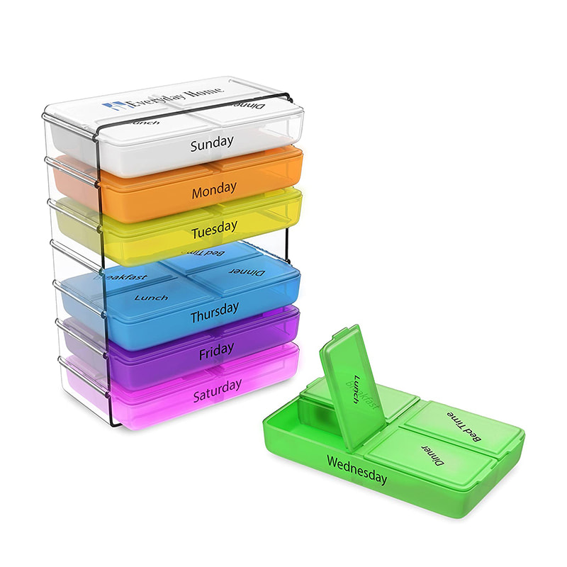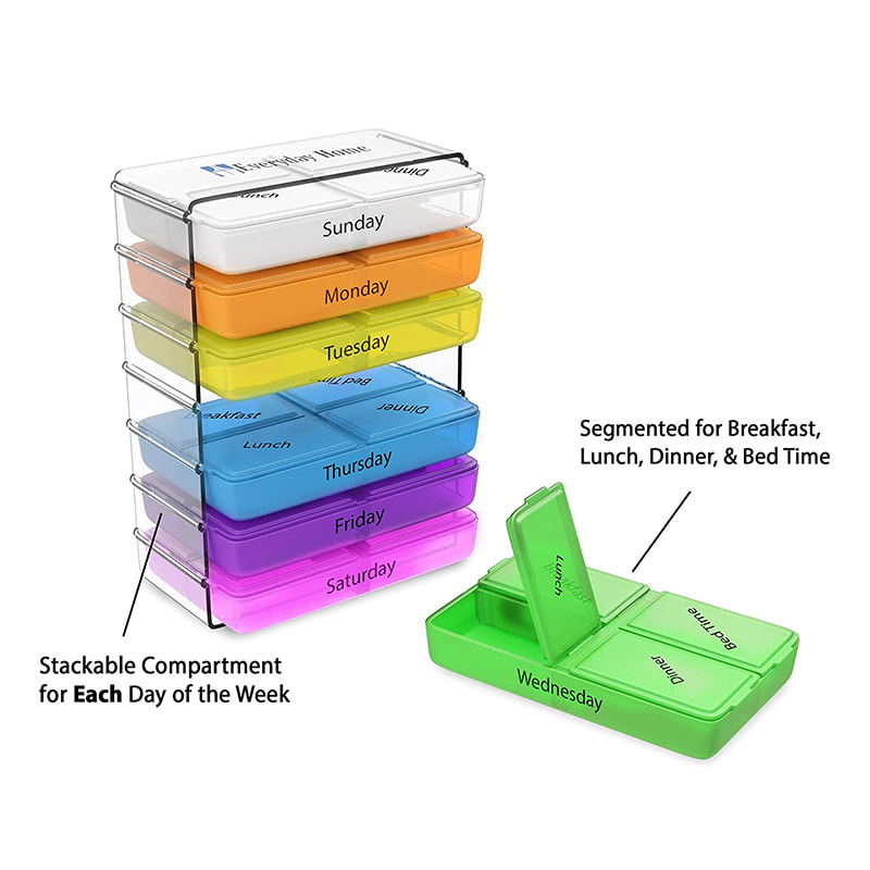 ผู้จัดงานยารายวันขนาดเล็กที่วางซ้อนกันได้นี้ต้องใช้พื้นที่เคาน์เตอร์น้อยมาก