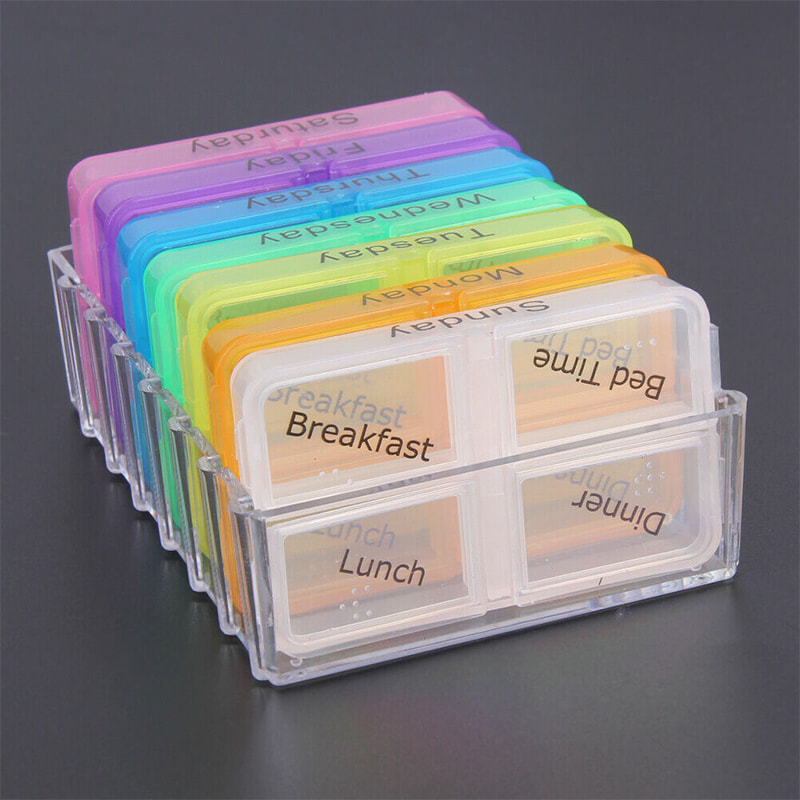 คอนเทนเนอร์ยารายวันนี้มีฉลากขนาดใหญ่อ่านง่ายในทุกช่องดังนั้นคุณสามารถหายาของคุณได้อย่างง่ายดาย