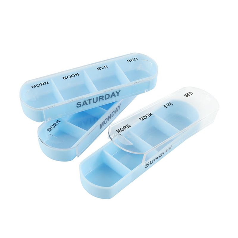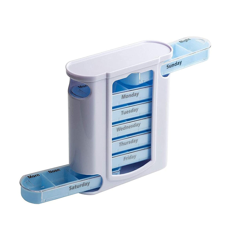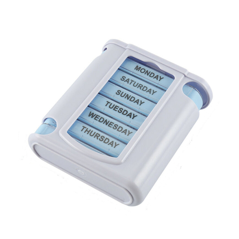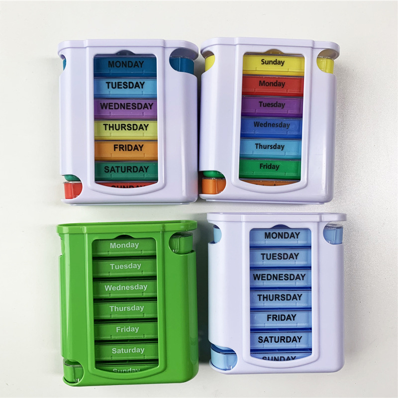 เคสด้านนอกได้รับการออกแบบโปร่งใสและแต่ละถาดมีสีสดใสที่ไม่ซ้ำกันสำหรับผู้ใช้เพื่อแยกความแตกต่างของวันในสัปดาห์ได้อย่างง่ายดาย